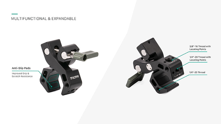 The Tilta Accessory Mounting Clamp is a versatile accessory clamp, designed to securely fasten onto various parts, granting you the freedom to mount a wide range of accessories with ease.