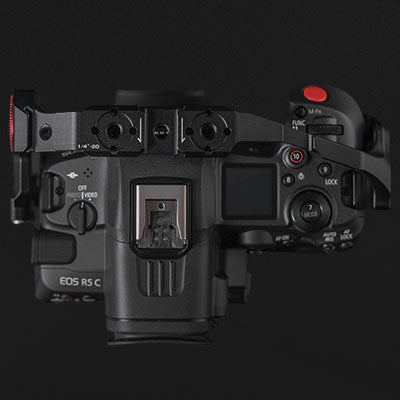 This Camera Cage offers enhanced protection for the Canon R5C while expanding mounting options for various camera accessories.