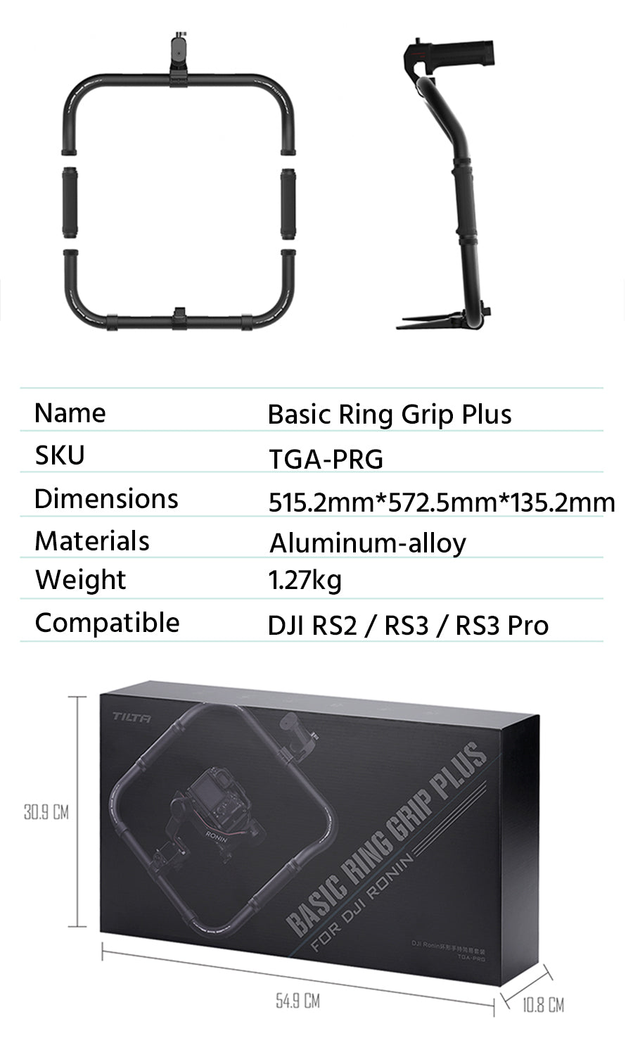 The Basic Ring Grip Plus is the ultimate cost efficient support system for the DJI RS2, RS3 and RS3 Pro Gimbals.