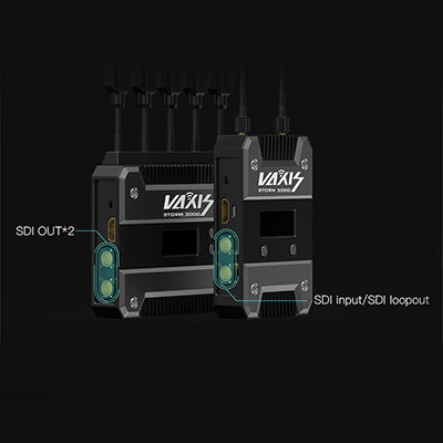 The VAXIS STORM 3000 Wireless HDMI/SDI Transmission Suite utilize today's most advanced wireless video transmission technology, which can realize the broadcast-class and uncompressed 3G SDI/HDMI HD video signal transmitted with no compression and zero delay. The suite includes one transmitter and one receiver, where the transmitter provides a 3G/HD SDI input and a HDMI input, and the receiver also provides a 3G/HD SDI output and a HDMI output.